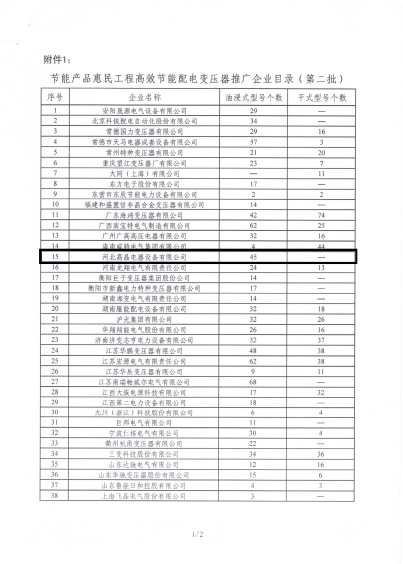 在公布的目錄中,河北高晶電器設(shè)備有限公司有45個(gè)油浸式型號(hào)入圍,這說明我公司自主研發(fā)的能效產(chǎn)品得到了國(guó)家政府部門的肯定,彰顯了我公司產(chǎn)品質(zhì)量和技術(shù)實(shí)力。